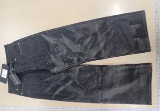 WANNA LAB Angel Print Raw Denim Baggy Jeans